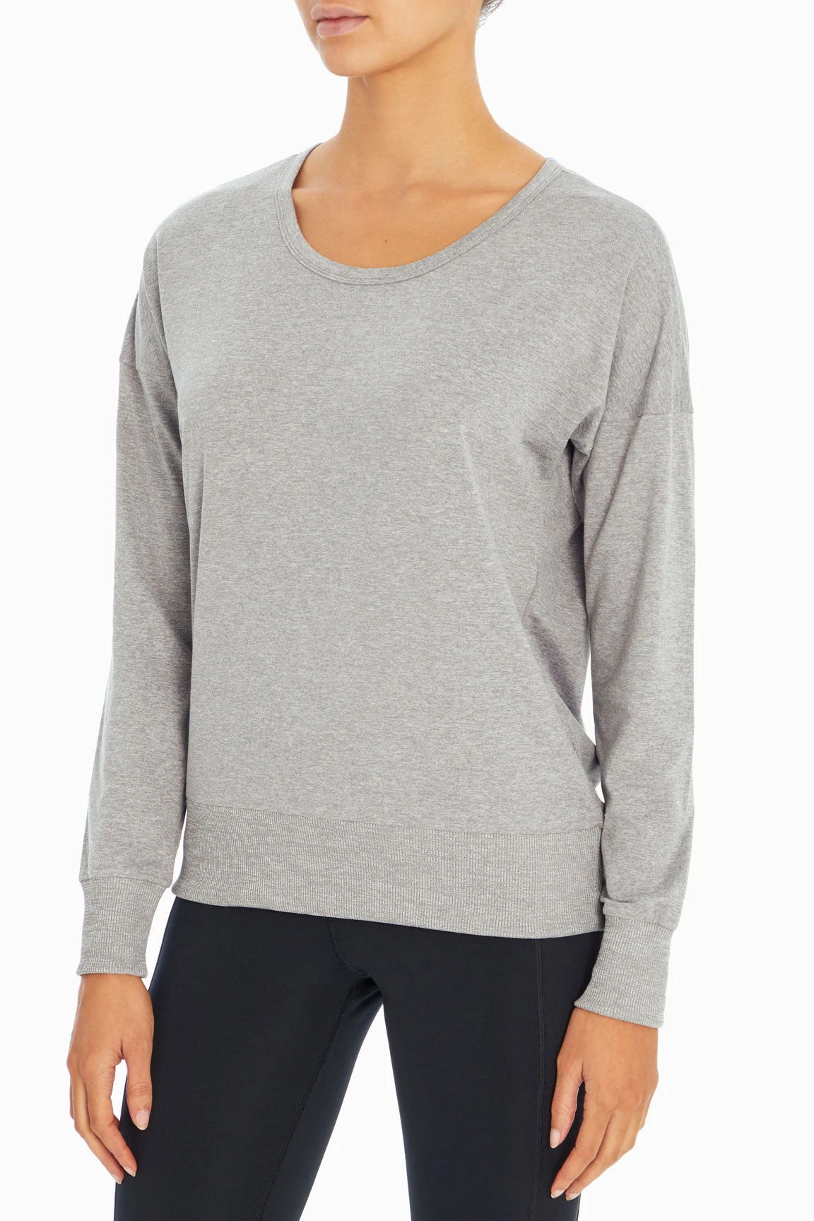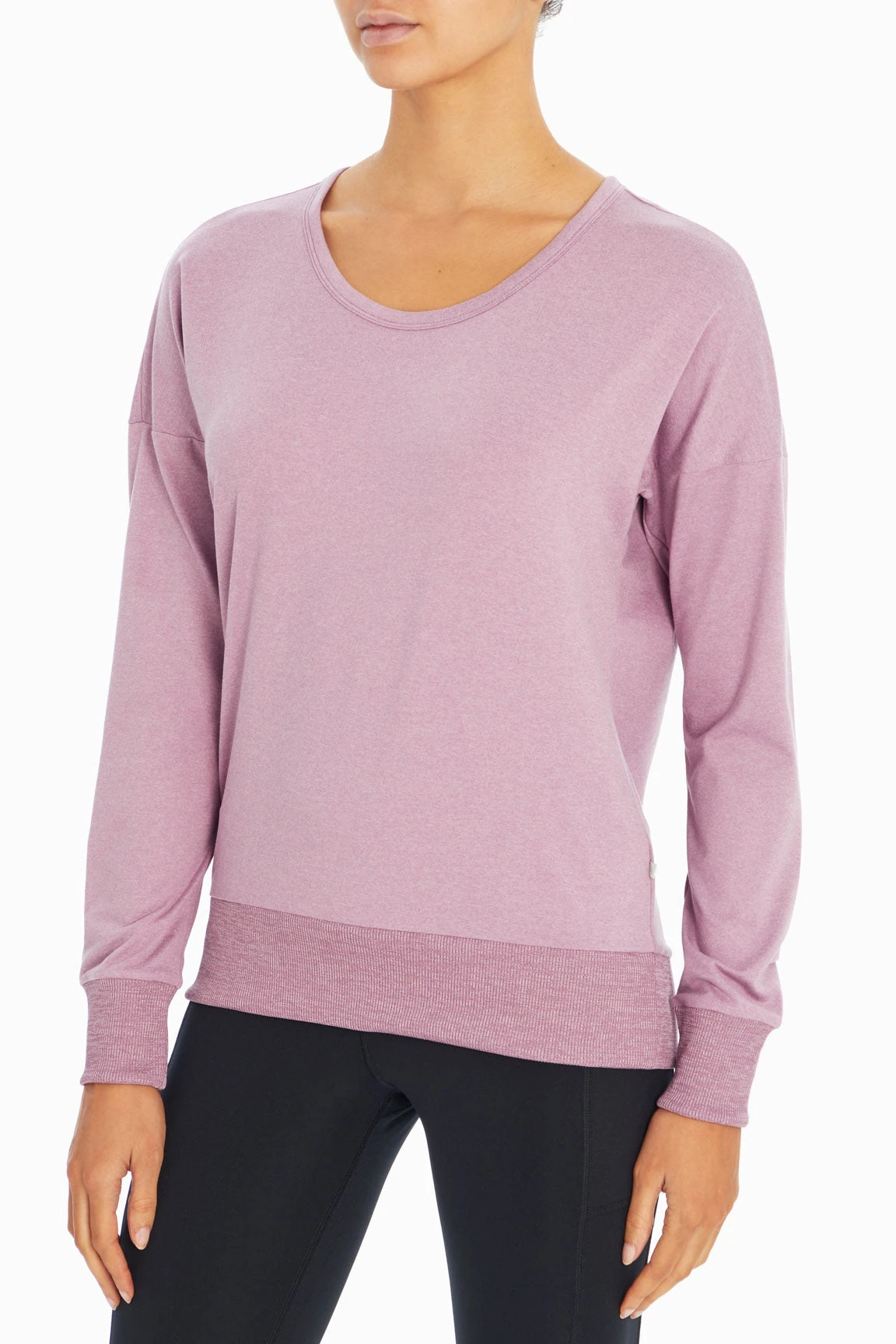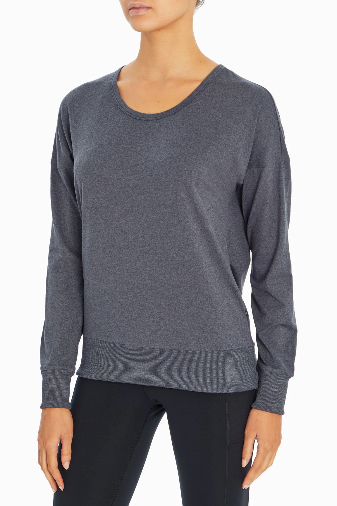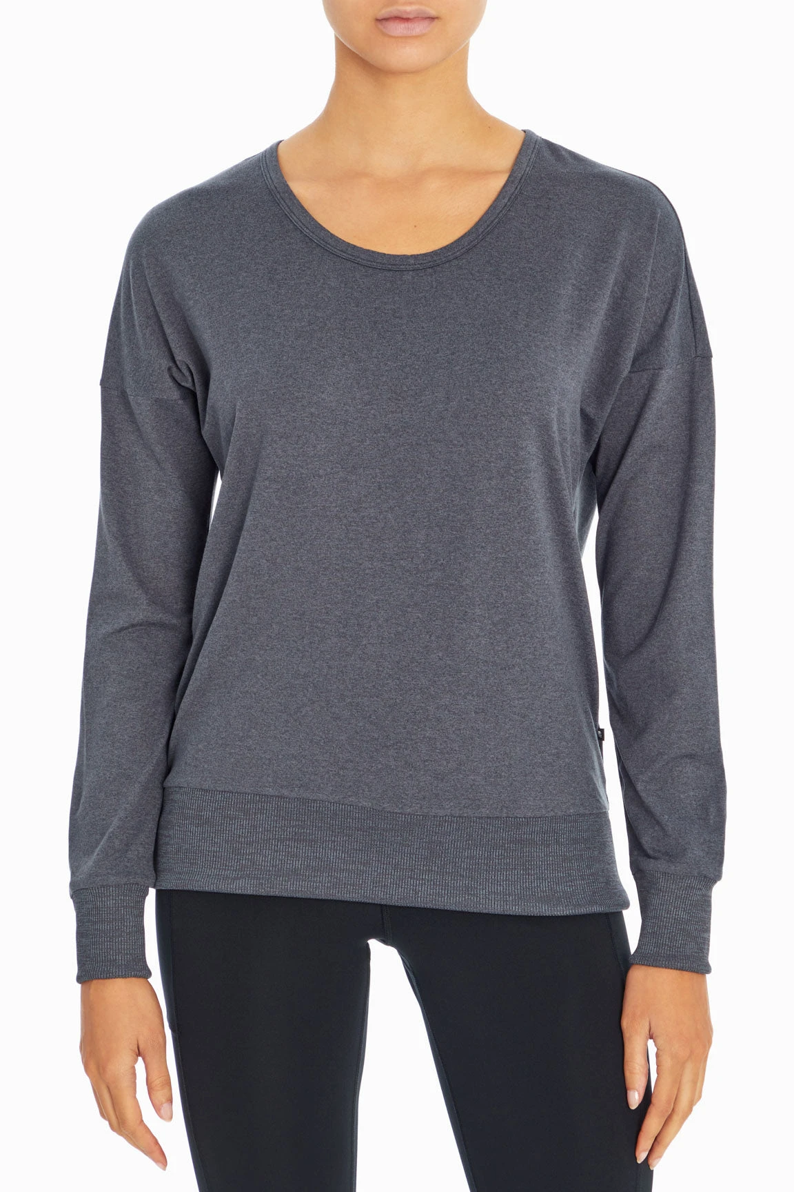 Curl up to a post-workout tea in this soft (inside and out!) pullover — with moisture wicking, ribbed, banded trim, and surplice back design with support strap, you’ll appreciate the comfort.